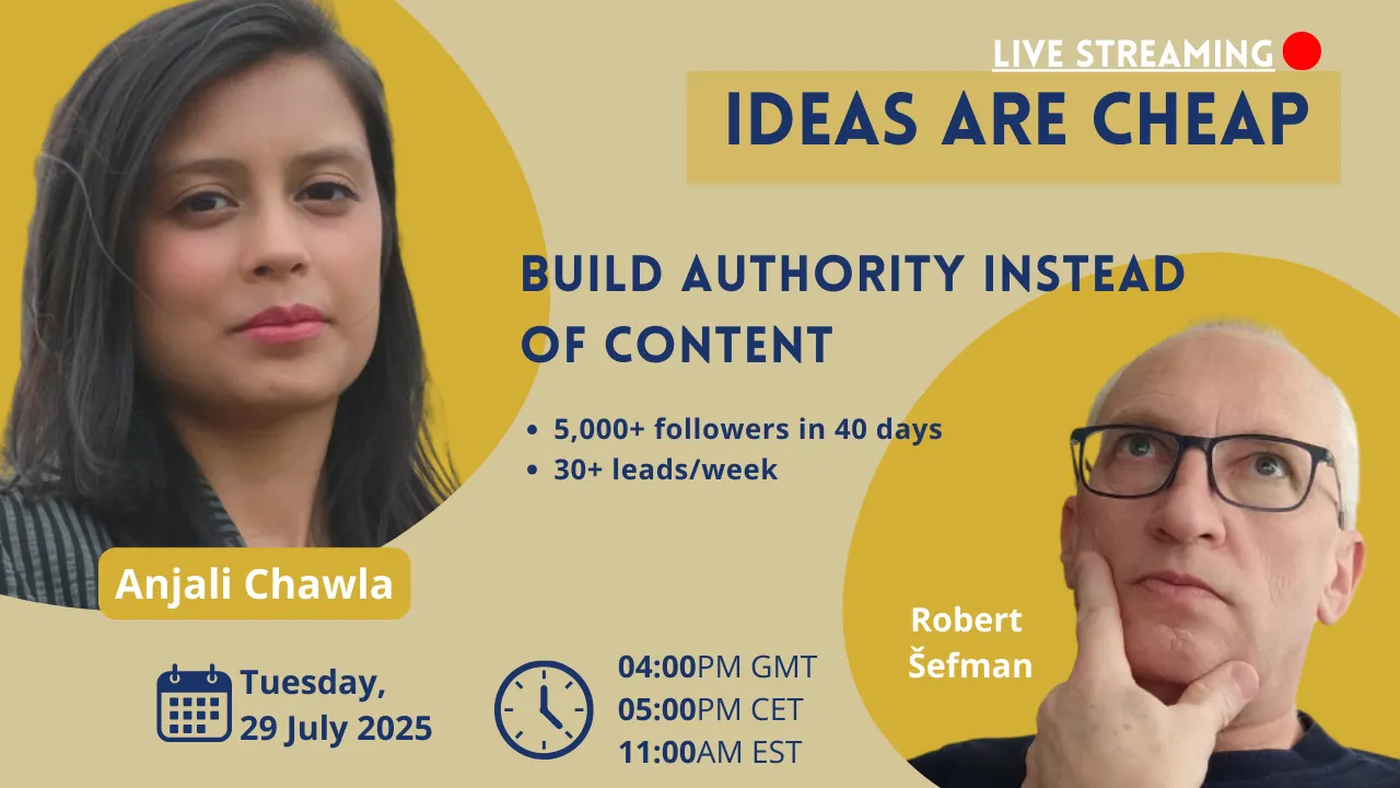 Build authority instead of content - 5,000+ followers in 40 days; 30+ leads/week